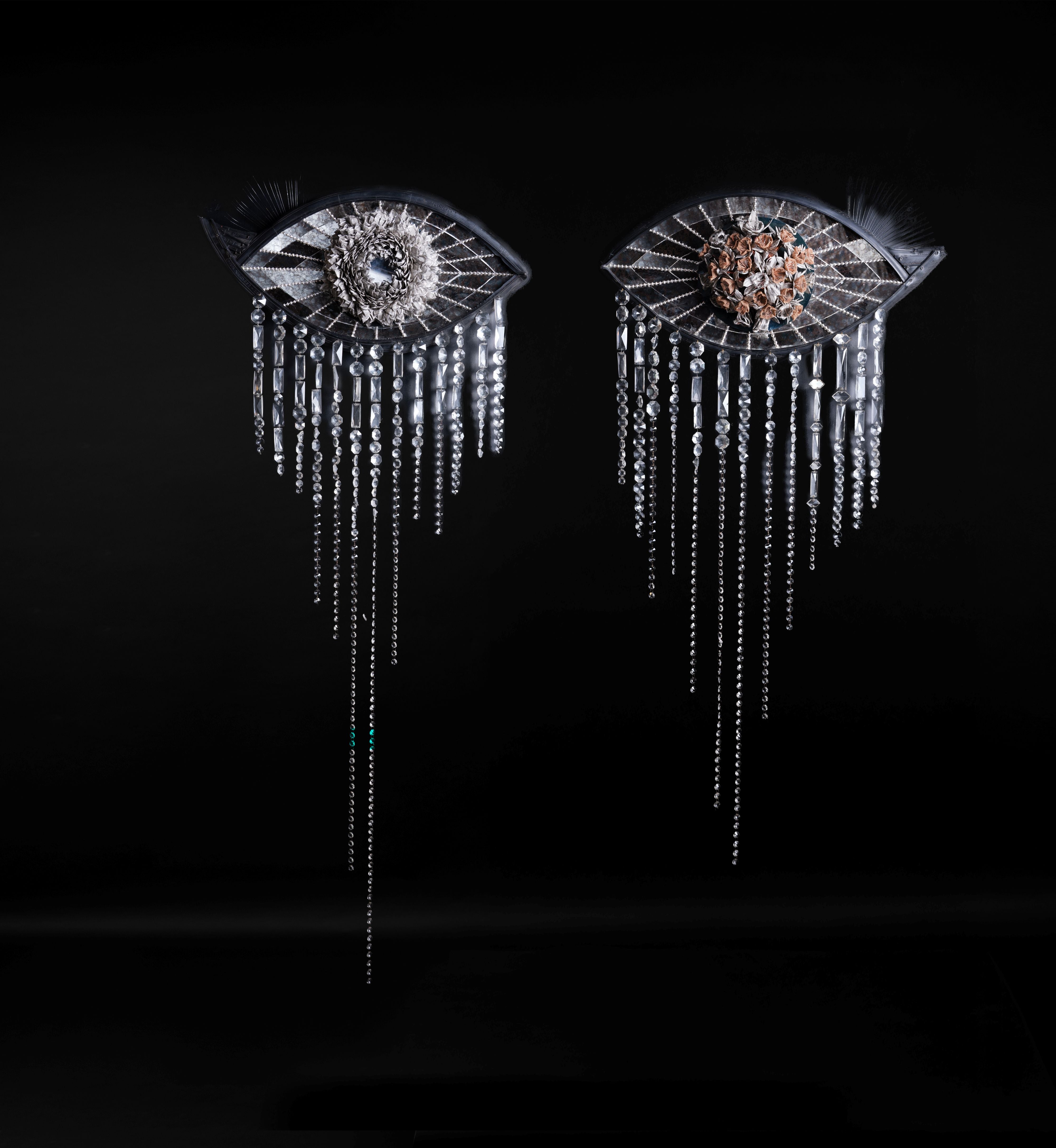 Medium/ Materials: Scrap mirrors, scrap metal flowers, x-rays, discarded cycle tyres, fan cover, discarded bits of a chandelier and plywood.