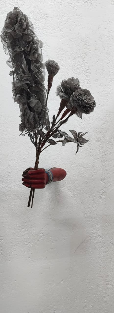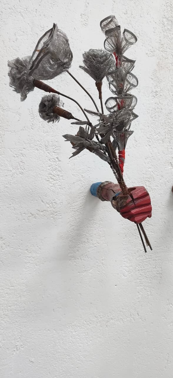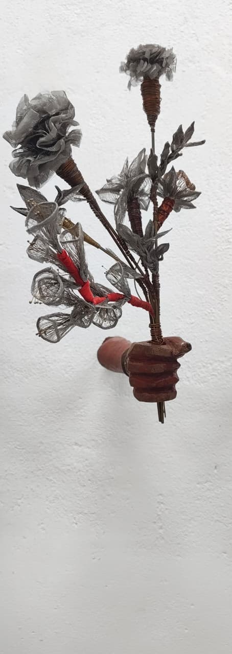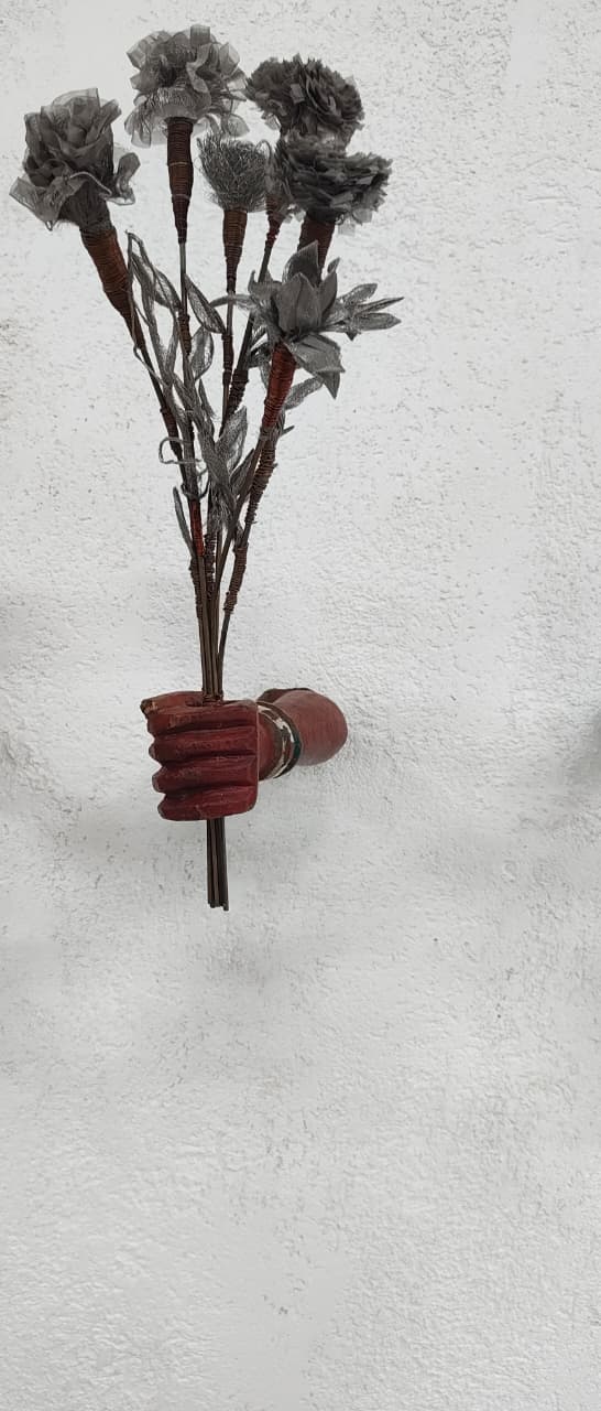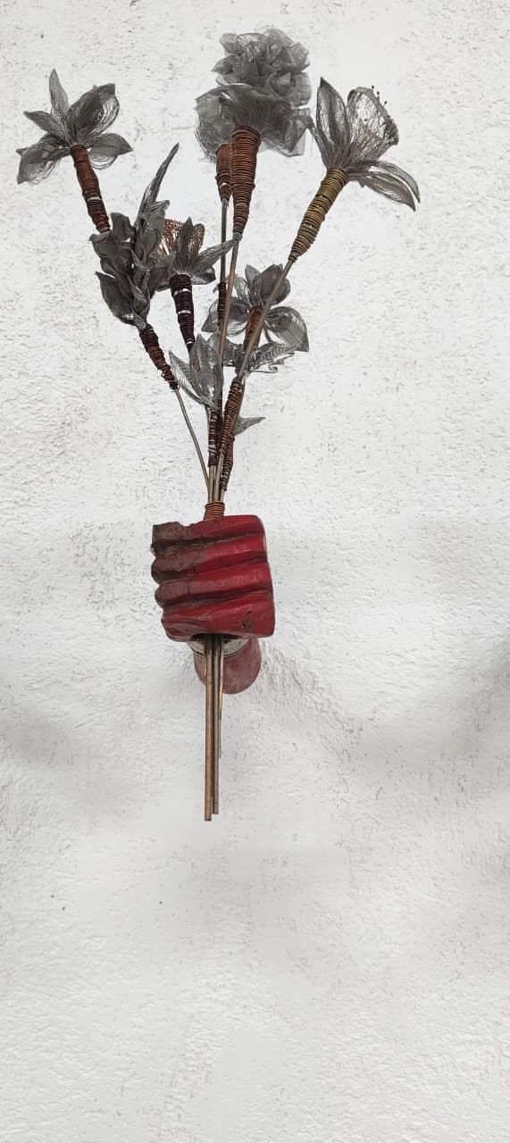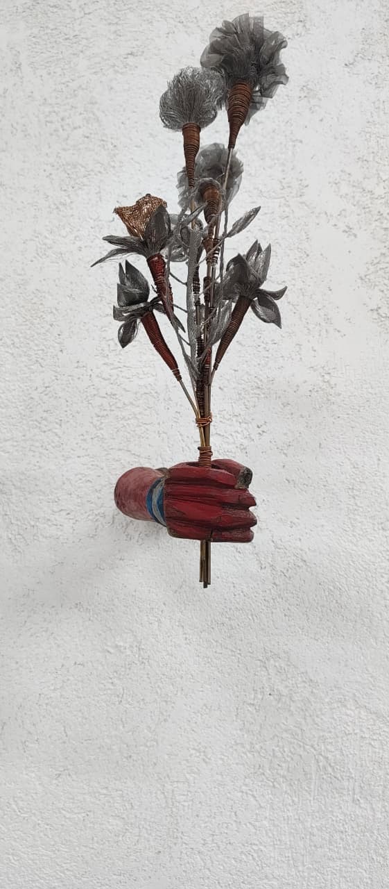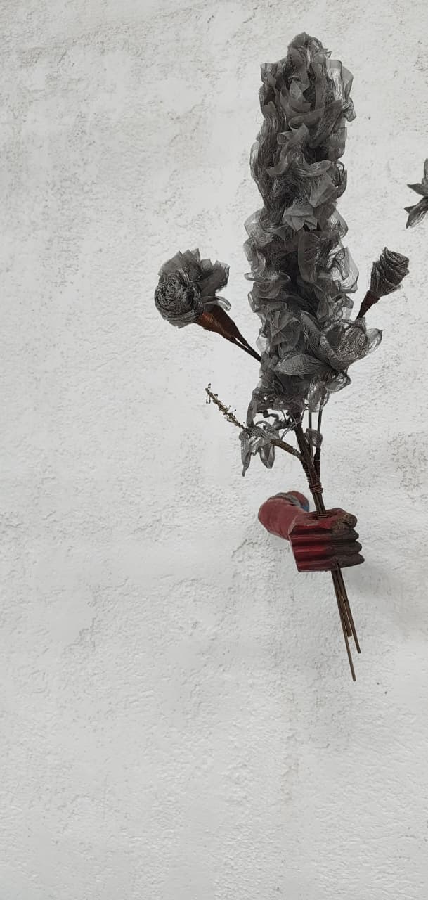 Medium/ Materials: Scrap metal flowers, brass wires, copper wires, iron rods and discarded wooden hands.