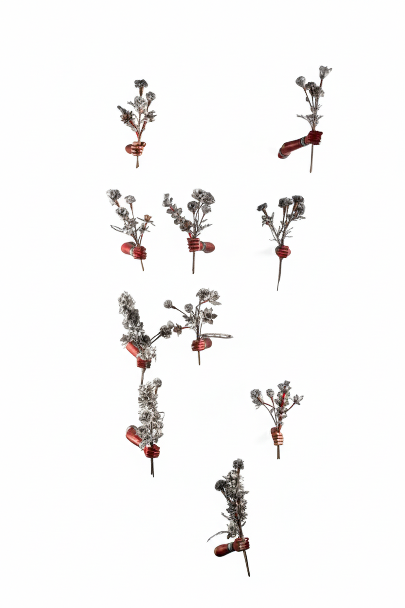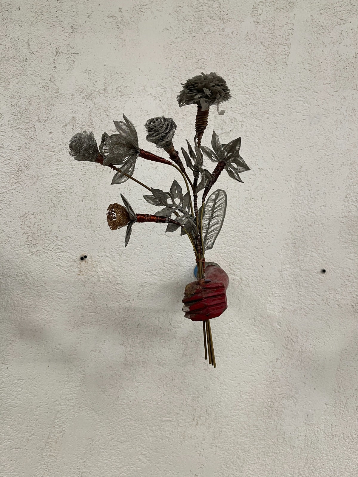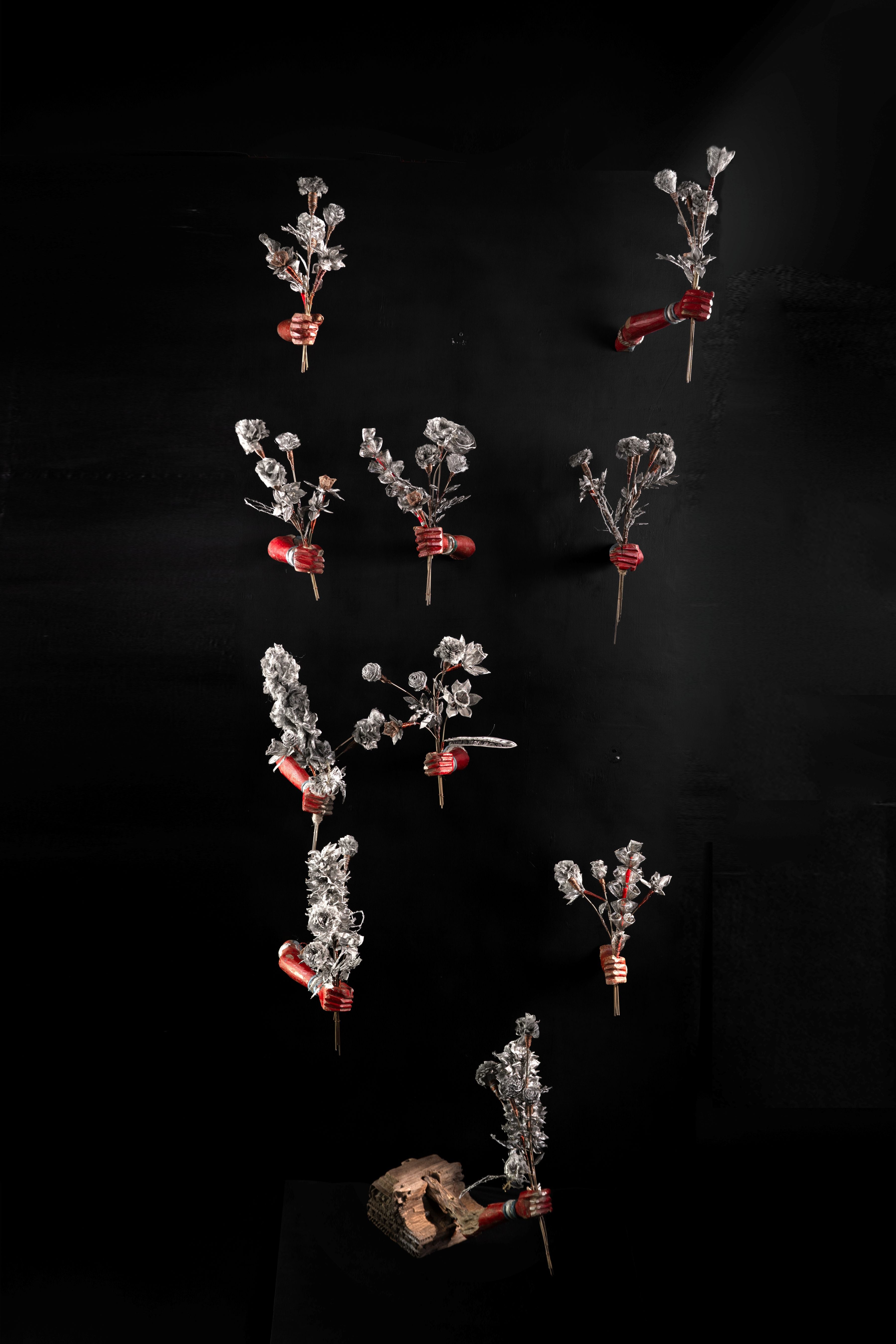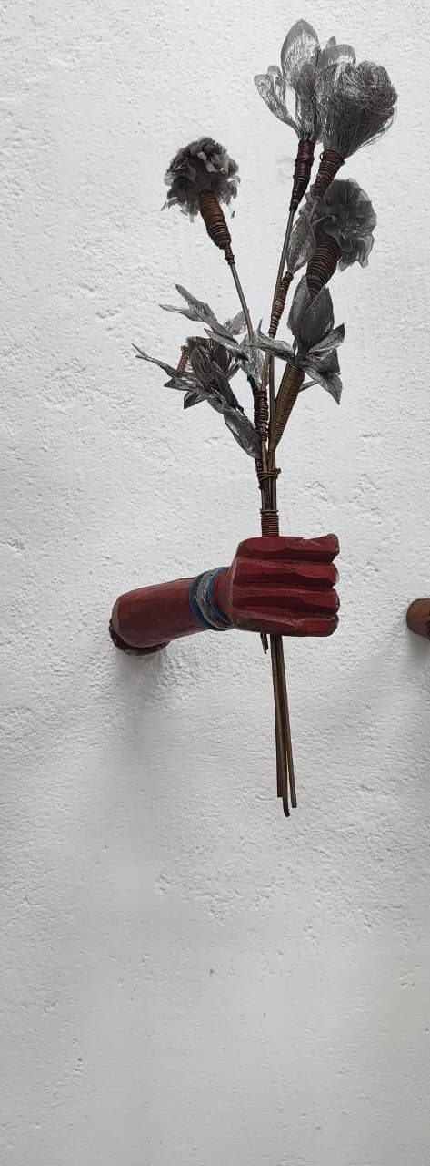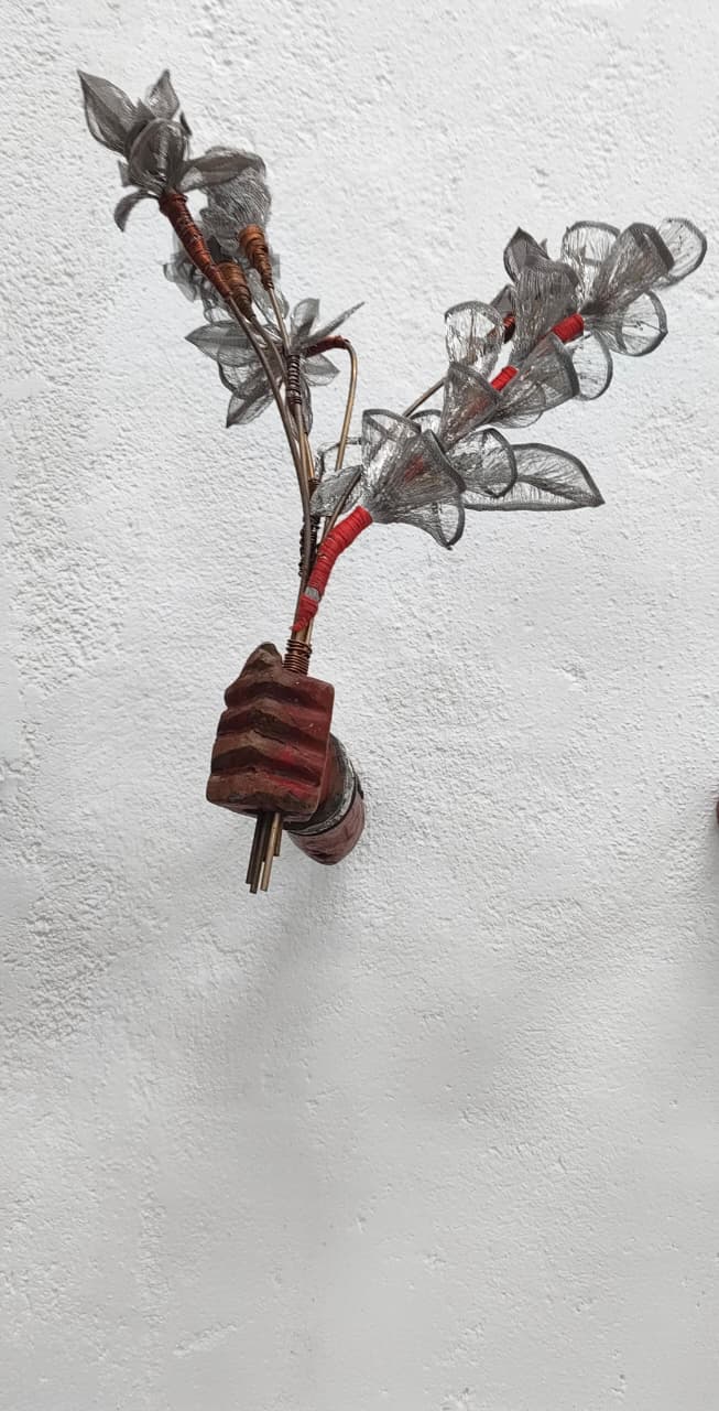 Medium/ Materials: Scrap metal flowers, brass wires, copper wires, iron rods and discarded wooden hands.