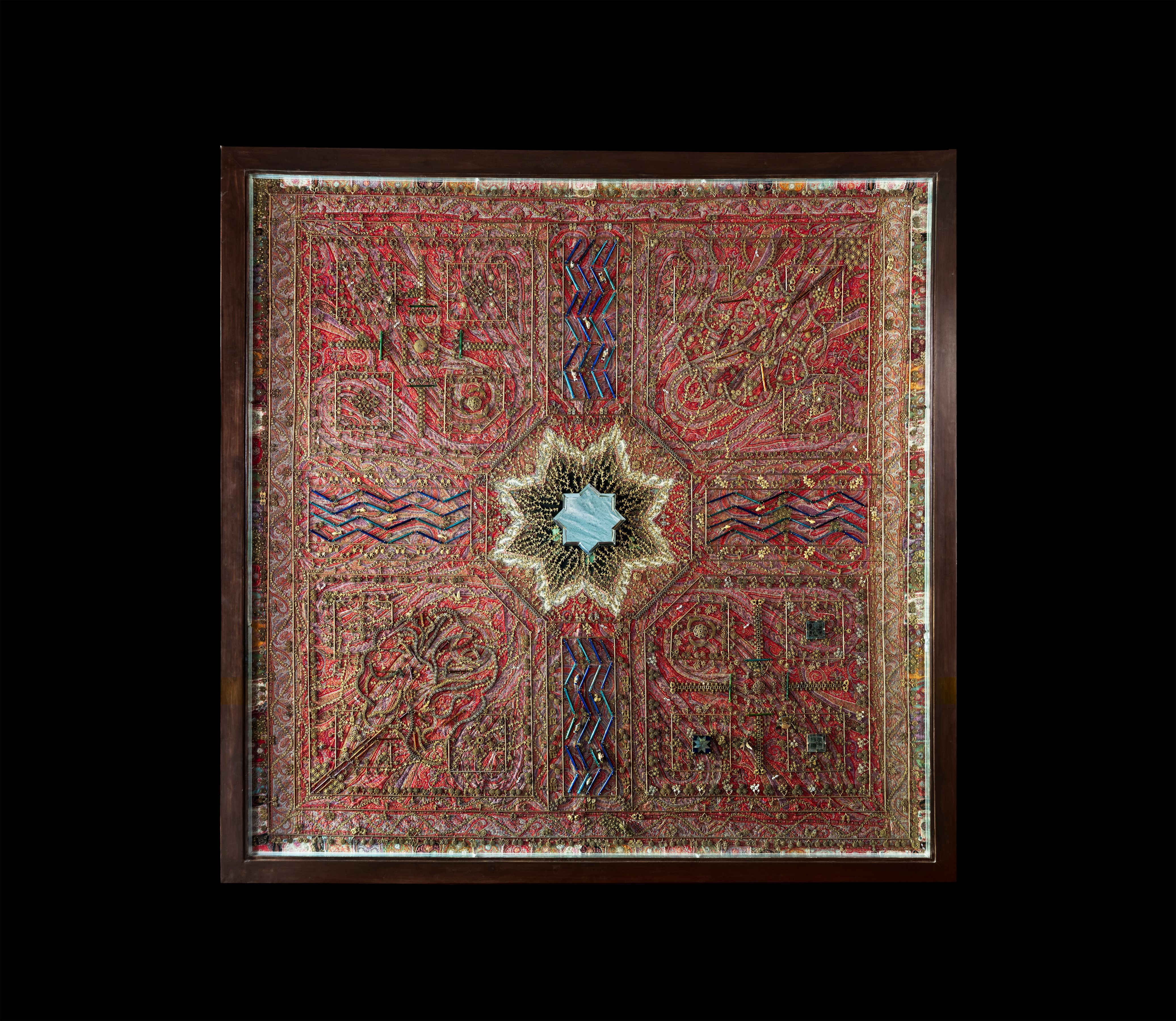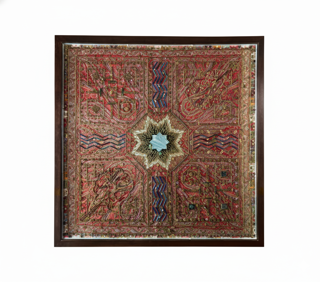 A map of paradise on a moth eaten shawl. A charbagh reimagined from scrap, watered by