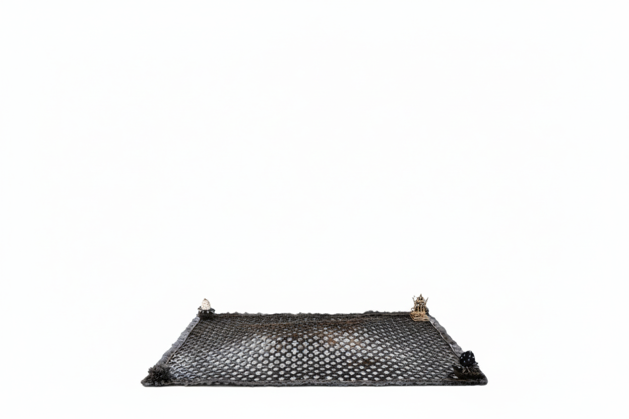 The first altar lays to rest all that which no longer serves us. It is an invitation to contemplate on what we have lost and what we have rid ourselves of. Be it friend or foe underneath the chadar, we come to pay our respects. Each corner is weighed down by a mir-e-farsh, which simultaneously translates to both master and slave of the carpet. It urges us to remember that which is important and not let our histories and lessons be blown away.