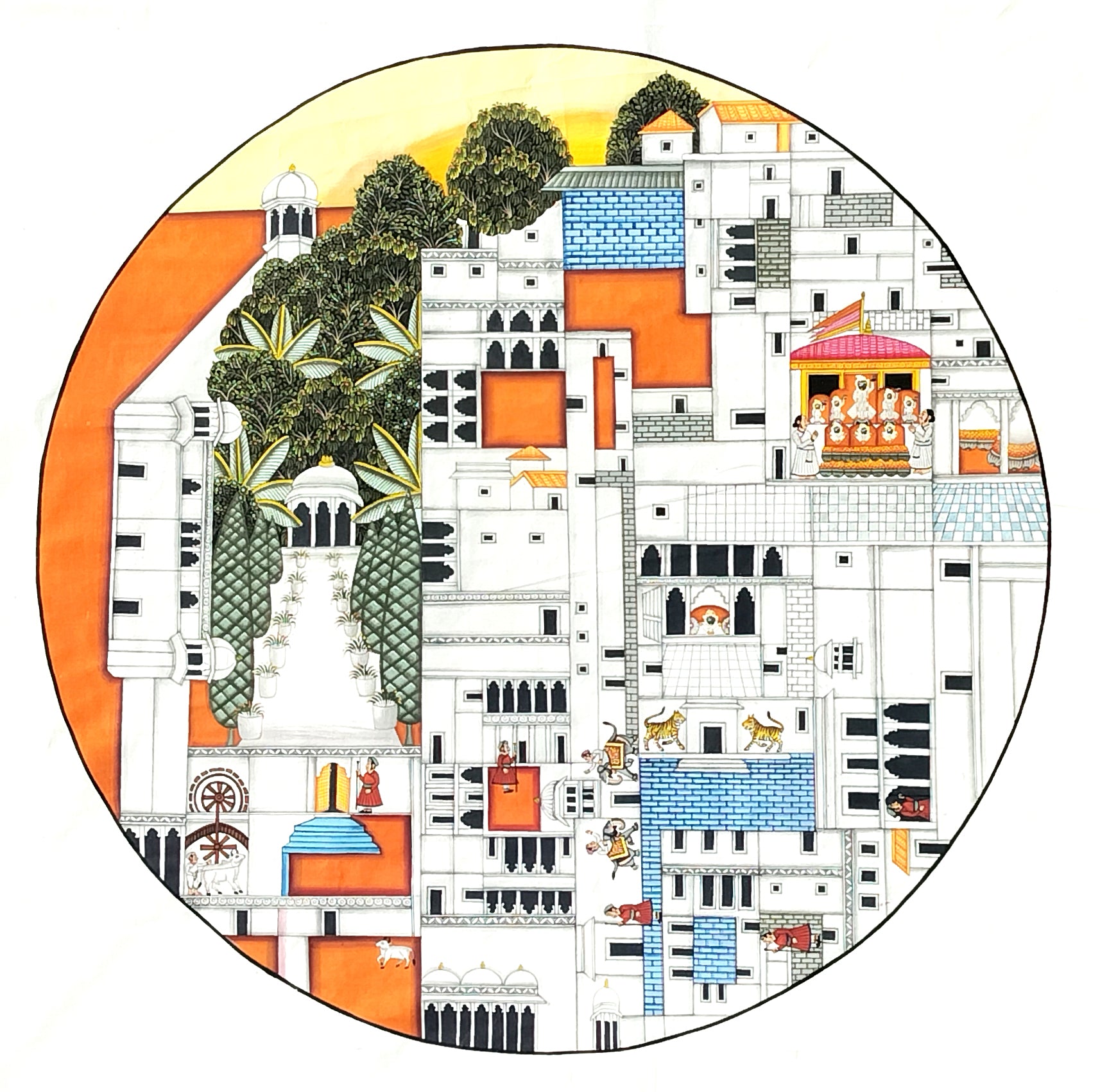 Circular Pichwai: Nathdwara Map (Shrine) - Framed