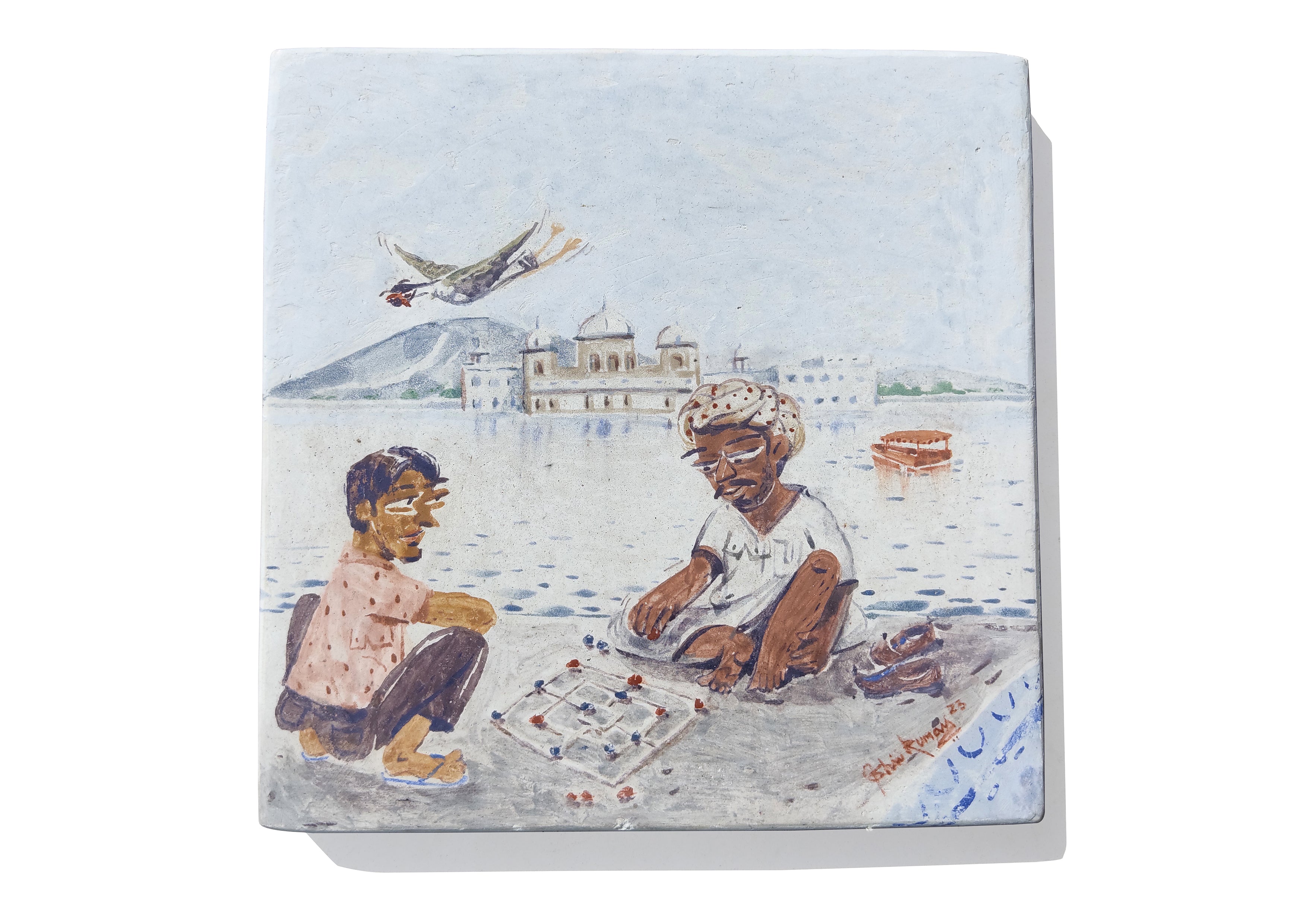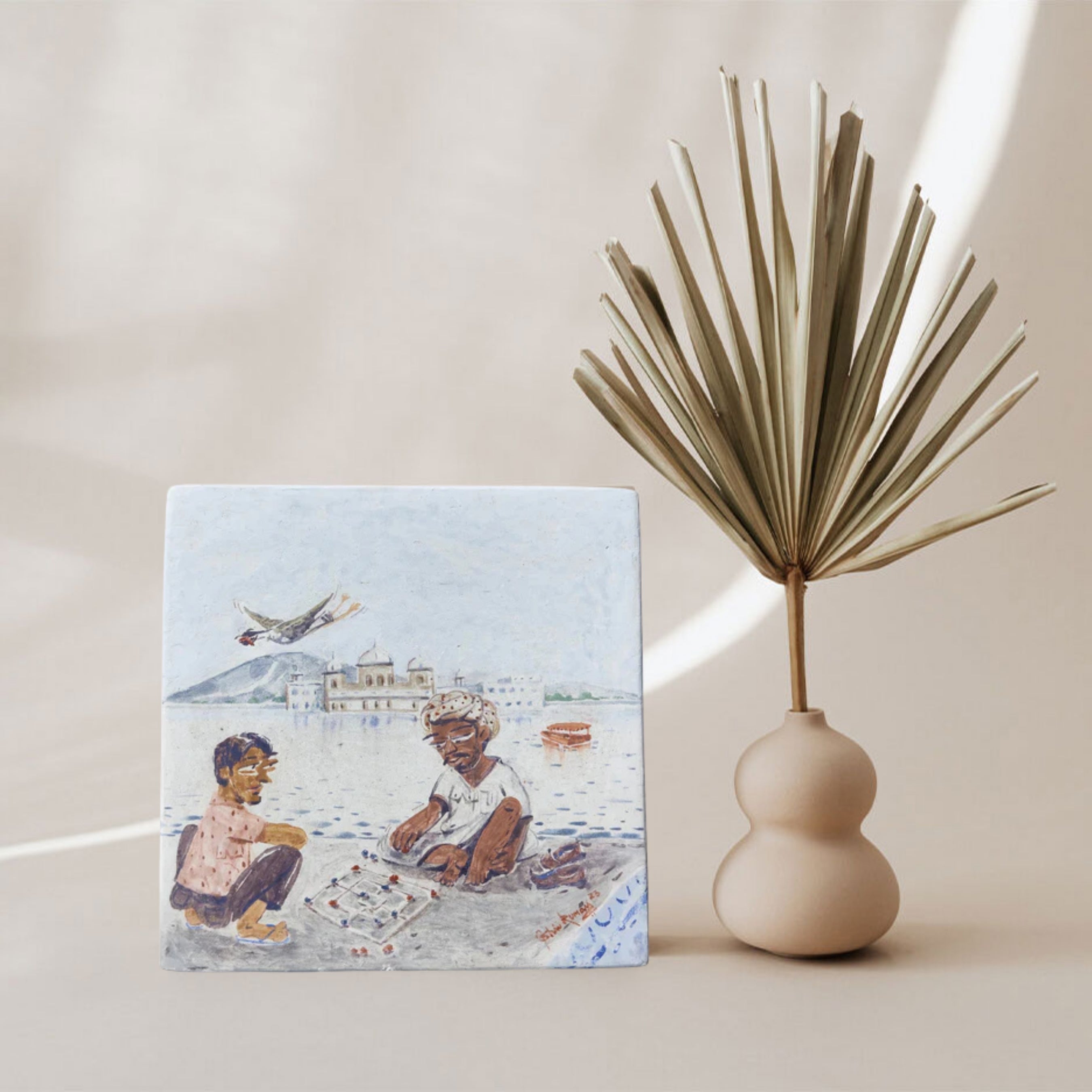 Medium: Natural pigments on marble plastered cement tile in Indian fresco technique